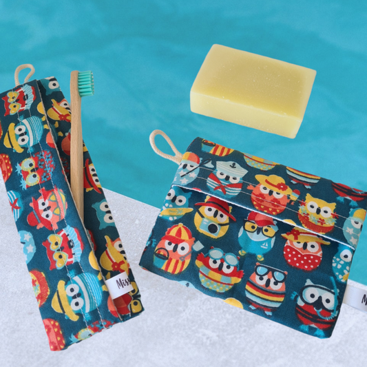 Pochette Brosse à dents M - Chouettes